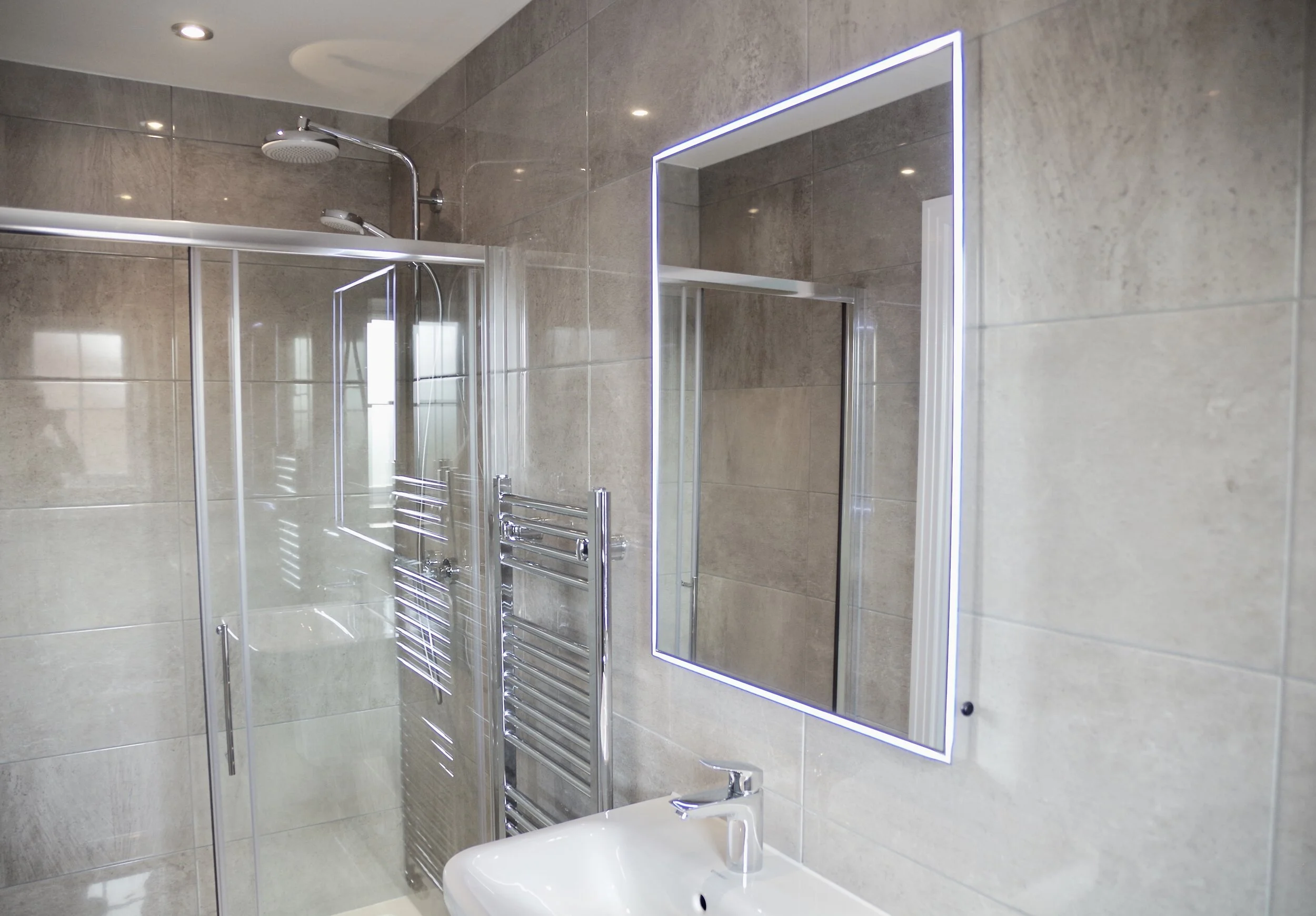 - extensive Porcelanosa tiling
